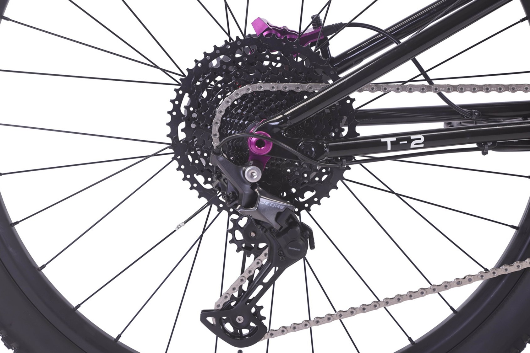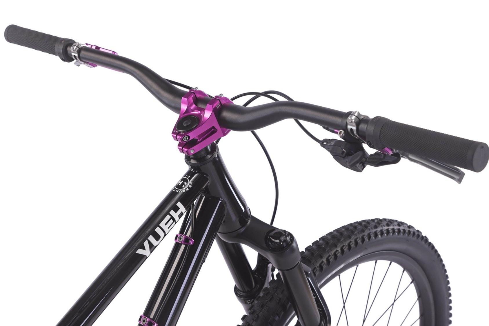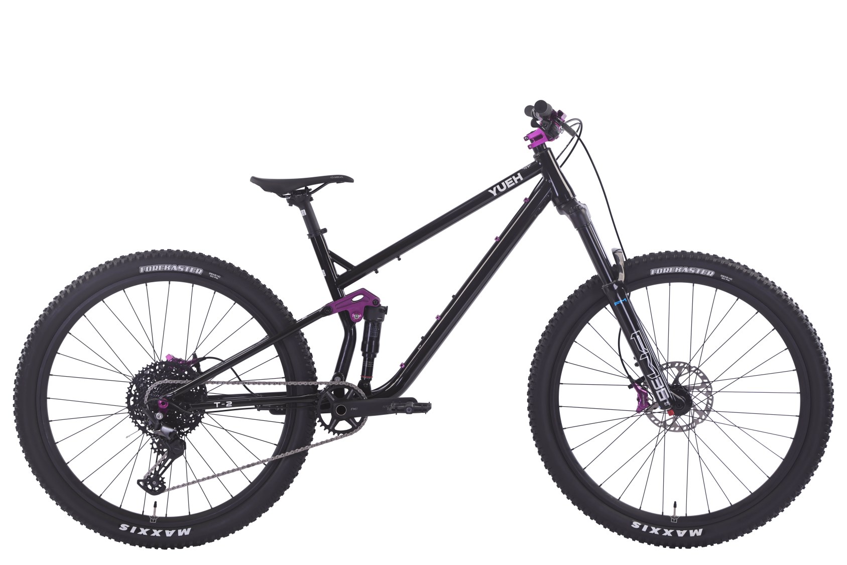 Двухподвес YUEH Y001 / Y002 на хромомолибденовой (Cr-Mo) раме с осями: колеса 29 дюймов, амортизатор RockShox Deluxe, трансмиссия Shimano Deore и 4-поршневые тормоза Simaers.